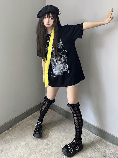 2024 夏 韓国 トップスかわいい Tシャツ ロング丈 ファッション半袖スリムフィット サイドファンタジーシルエット ゆったり 休日レディースサイズ韓国系_おしゃれ カジュアルメンズライクT