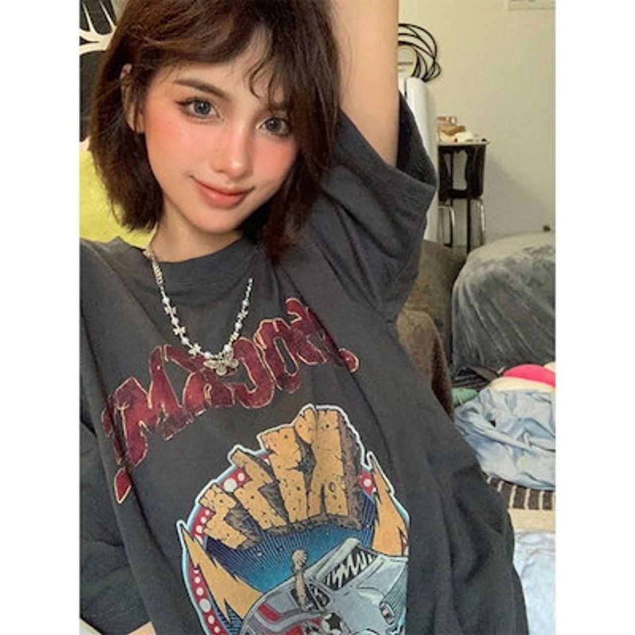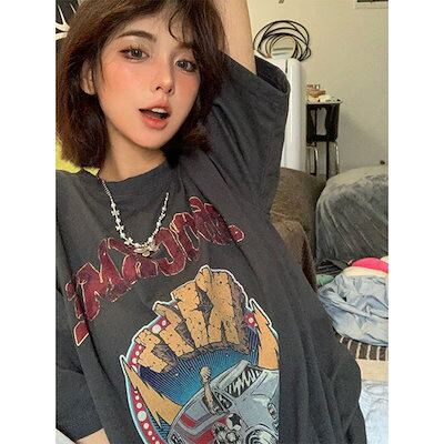 2024 夏 韓国 甘い トップス Tシャツ ラウンドネック 休日 ファッション サイズスリムフィット加工風丈短め ショート カットソー シルエット レディース 韓国系 休日 おしゃれ T