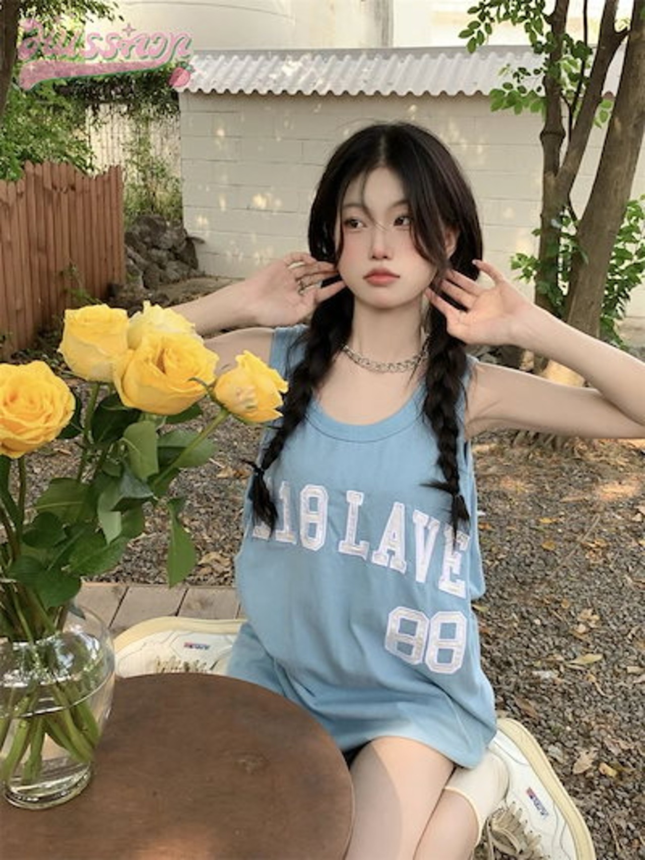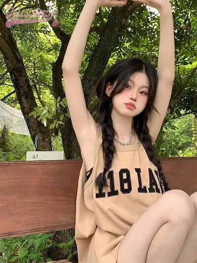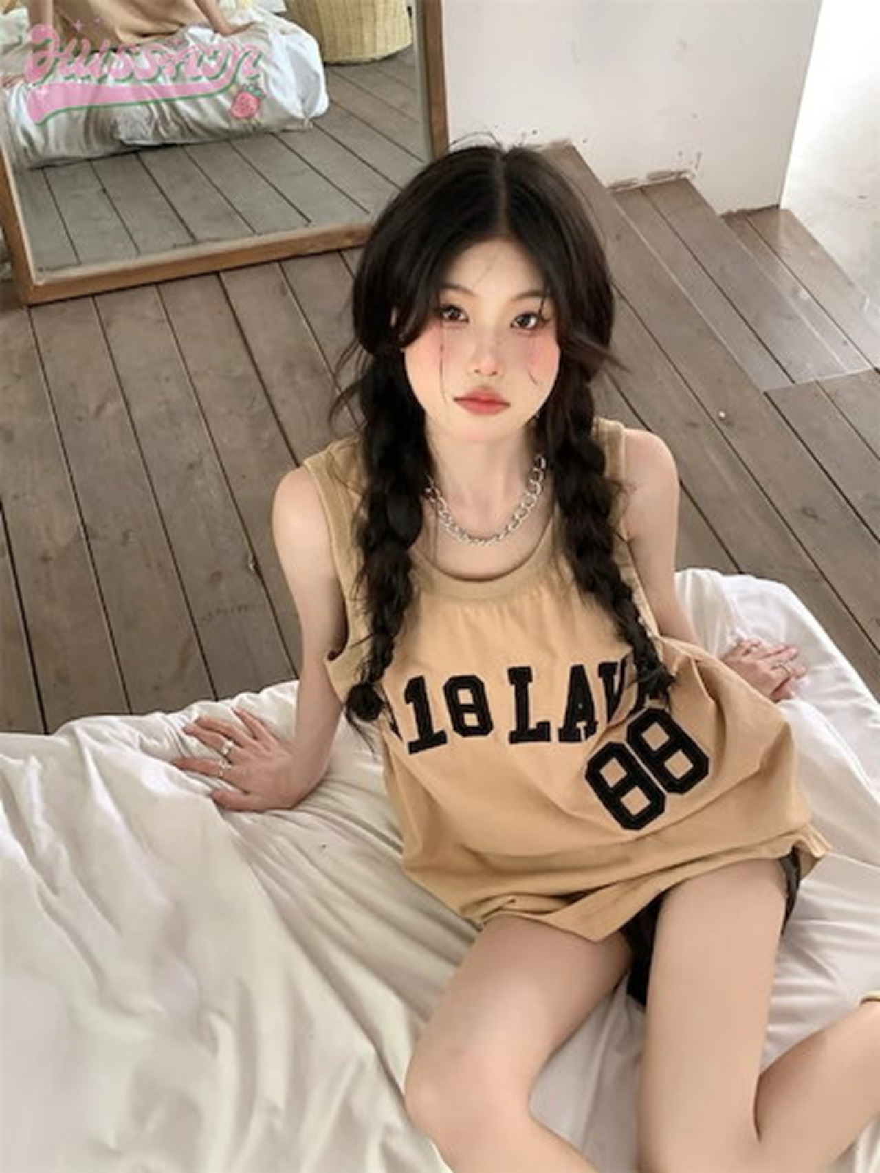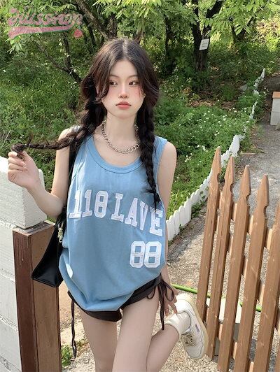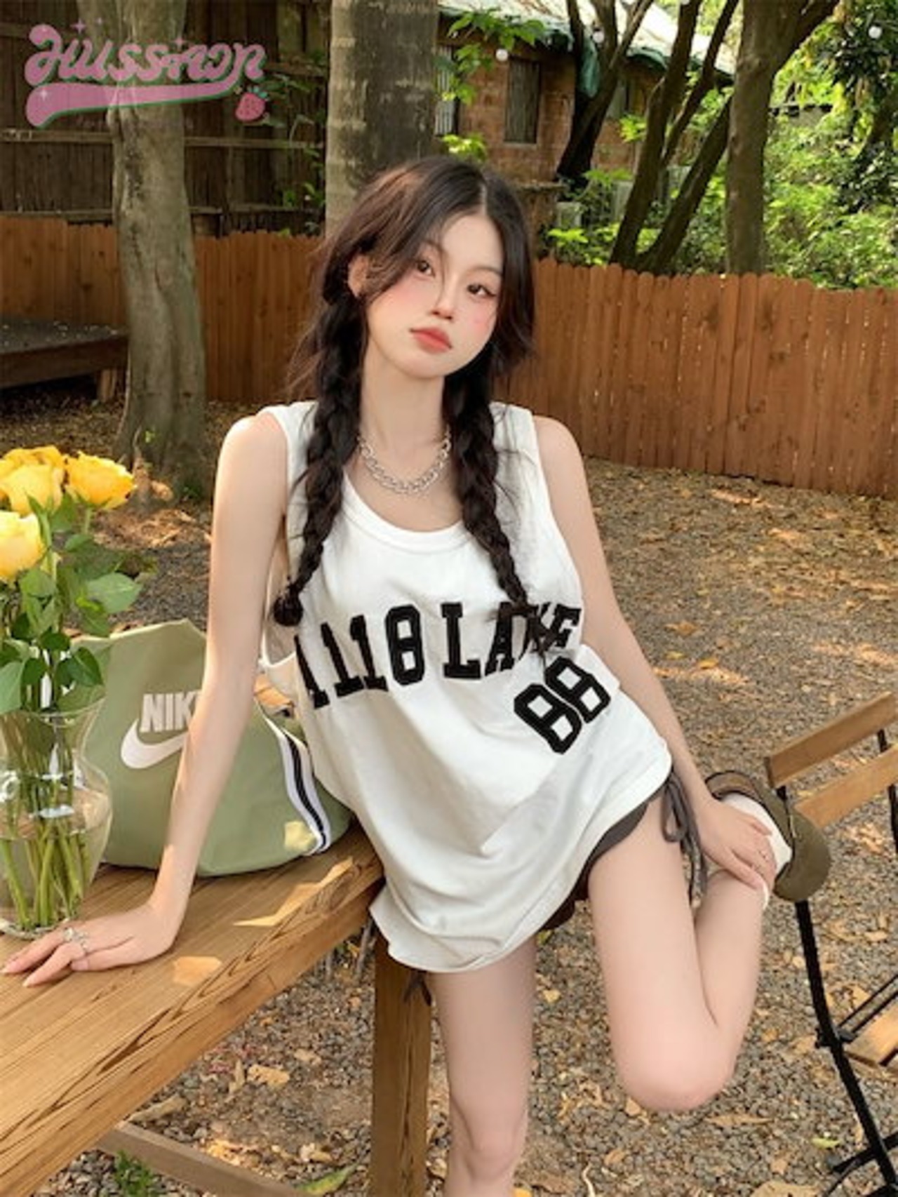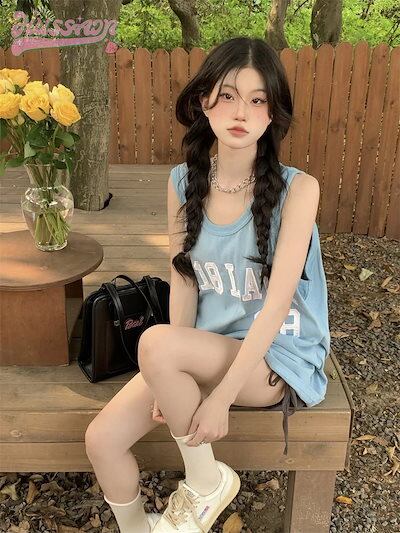 2024春夏「上下別売り」 ベスト Tシャツ ベスト セットアップ ショートパンツ 2点セット 刺繍 ミドル丈 トップス 可愛いT おしゃれ