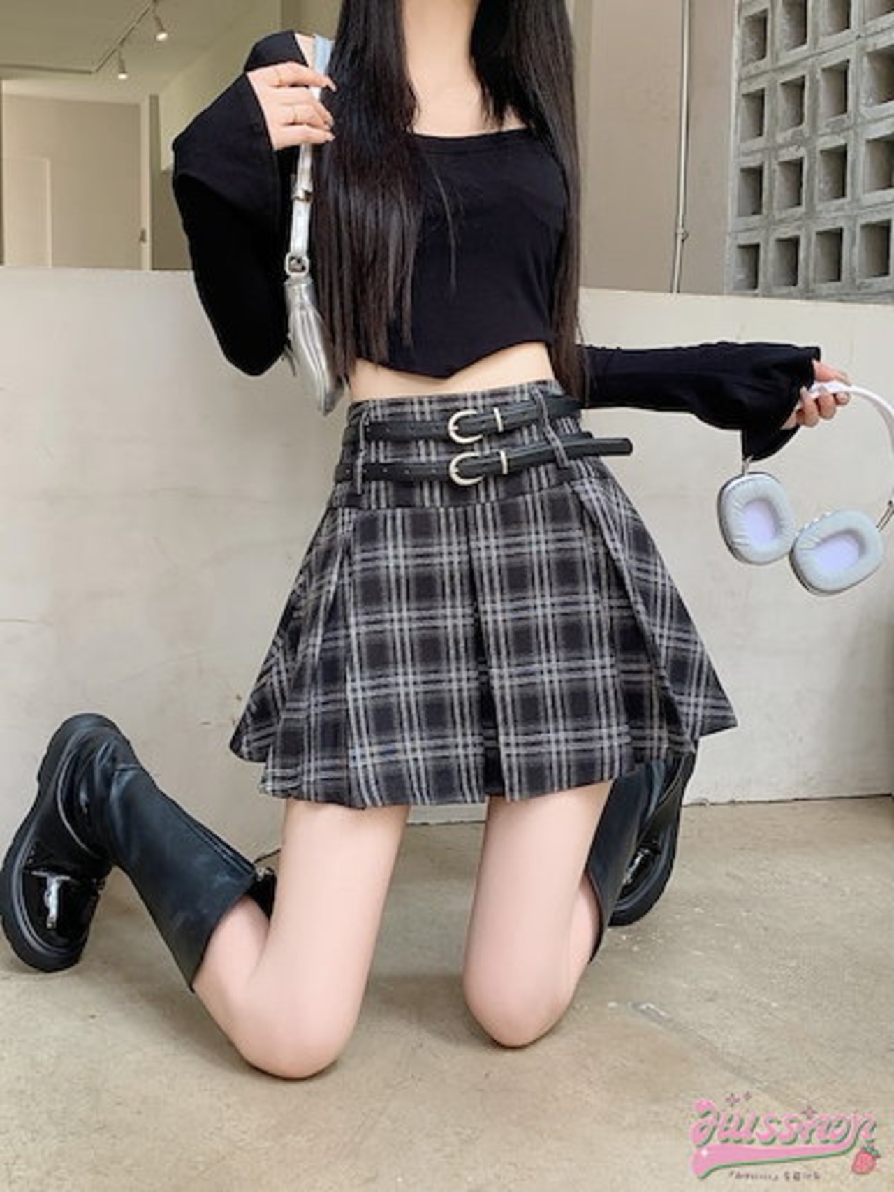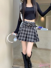 スカート ミニ丈 プリーツ 台形 Aライン チェック ハイウエスト 脚長効果 美脚効果 細見え 秋 かわいい おしゃれ カジュアル 韓国ファッション レディース お出かけ