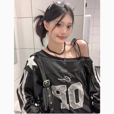 2024 秋冬 トップス 長袖 かわいいラウンドネック Tシャツ レディースロンt 韓国風ロゴ衣装ルーズゆったりカジュアルおしゃれサイズスリーブシルエットファッション系サイドシャツフットスウエット春