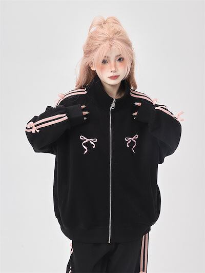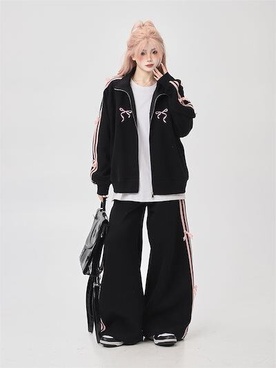 2024 春秋 2点セット トップス お出かけ 羽織り 韓国 レディース フルラウンドヘム ルーズ サイド ボトムス ストレート系冬 ゆったり サイズワイドシルエット上下リラックストラック2