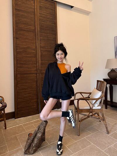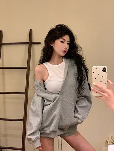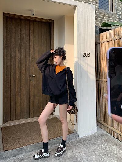 2024 秋冬トップス韓国 パーカー フード付き 羽織りレディース女っぽきれいめ大人っぽ上品 サイズゆったりカジュアルハーフショートパンツシルエットスリーブかわいいファッション系春3点セットアップ