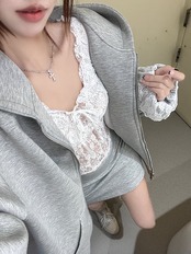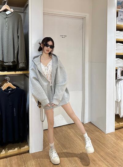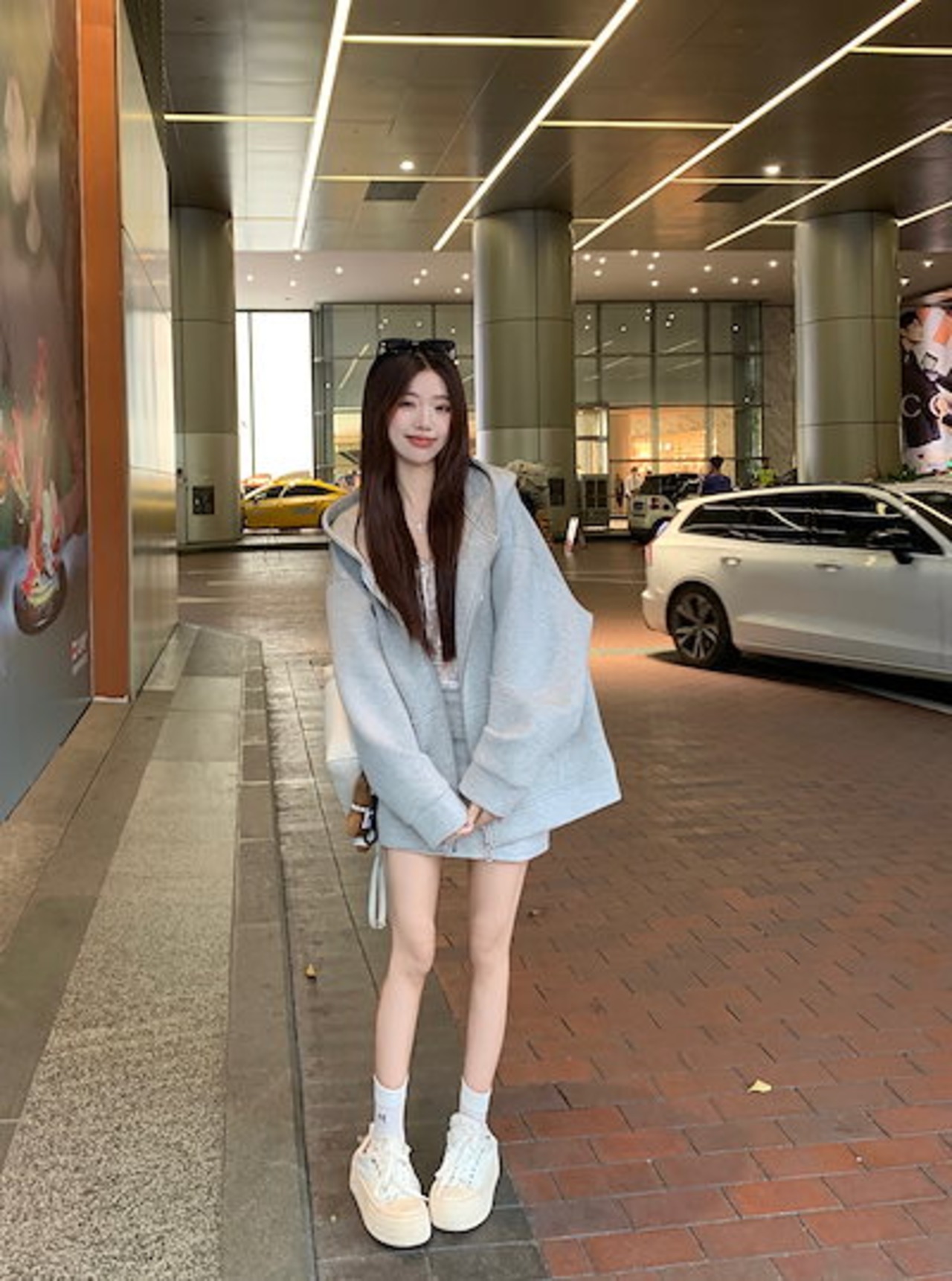 2024 秋冬トップス パーカー フード付き 羽織りミニスカート丈 きれいめ 大人っぽ 上品 サイズゆったりカジュアルトラックストリートシルエットスリーブかわいいファッション系春3点セットアップ