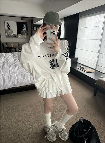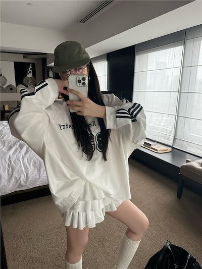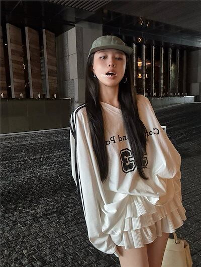 2024秋冬トップス レタープリント ナンバリング 長袖 オーバーサイズ サイドレトロ 韓国系ファッションネック レディース 大人可愛い ガーリー