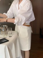 2024秋冬トップス シャツ 襟 スタンダードカラー ストライプ ボタン 長袖 ゆったり 秋 白 青 水色 おしゃれ かわいい 韓国ファッション レディース お出かけ