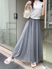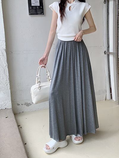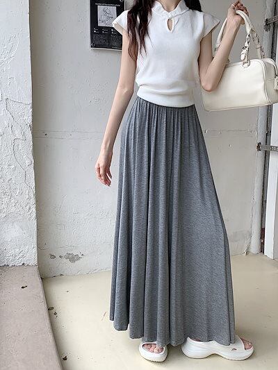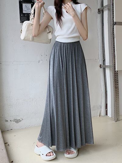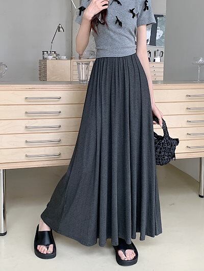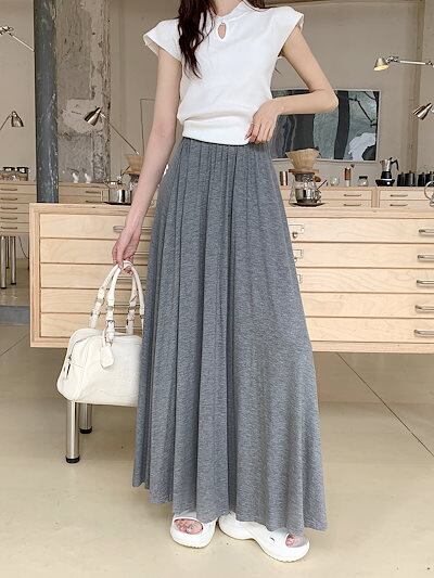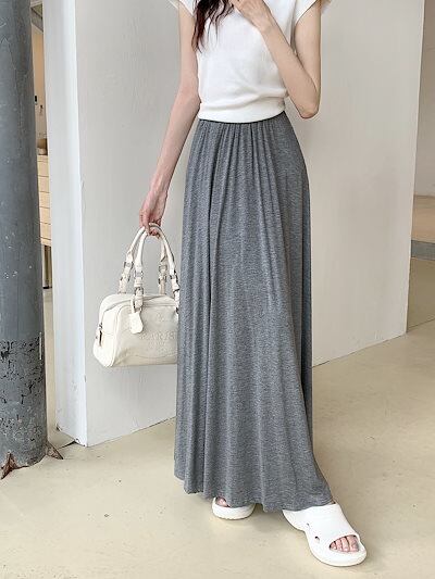 2024 春秋 スカート ロング丈 ハイウエスト 美脚効果 脚長効果 細見え 春 白 黒 韓国系ファッション レディース かわいい おしゃれ カジュアル お出かけ