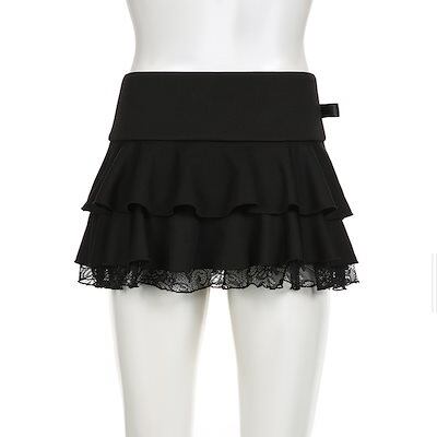 2024 夏秋 スカート かわいい ミニ丈 ハイウエスト 透け感 レトロデザイン 脚長効果 美脚効果 細見えボトムス 夏 黒 カジュアル おしゃれ 甘め フレンチ 韓国系ファッション