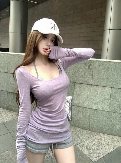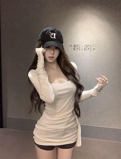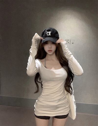 2024 秋冬tシャツ スリムフィット ロンt 薄手 Uネック 無地 トップス 長袖 シンプル レトロ 韓国ファッション レディース 大人可愛い ガーリー