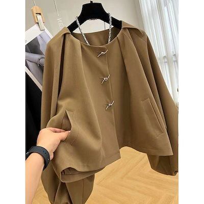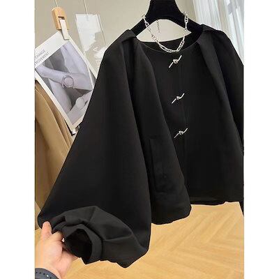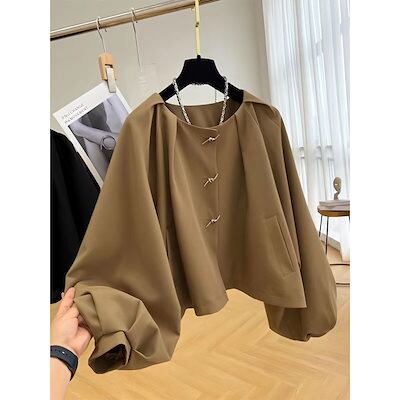 韓国 トレンチコート ランタンスリーブ ジャケット 春秋 レディース ラウンドネック ショート ジャケット ルーズ ウィンドブレーカー ジャケット