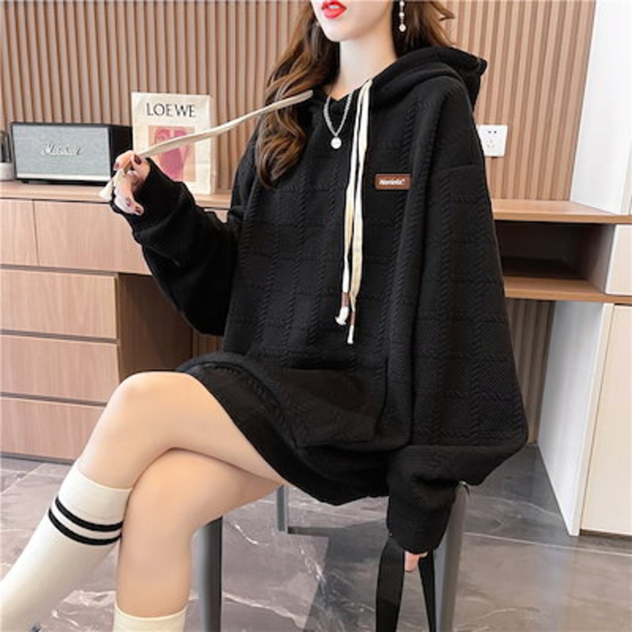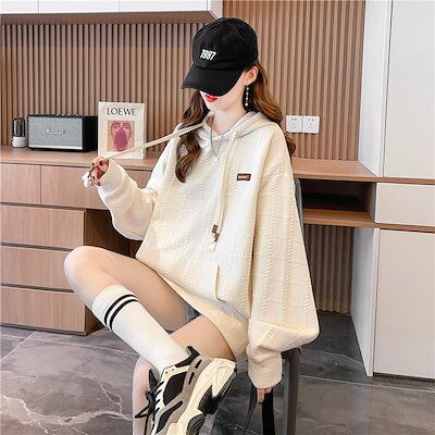 韓国 パーカー 秋のスウェットシャツ レディース ルーズ 薄手 フード付き トップス