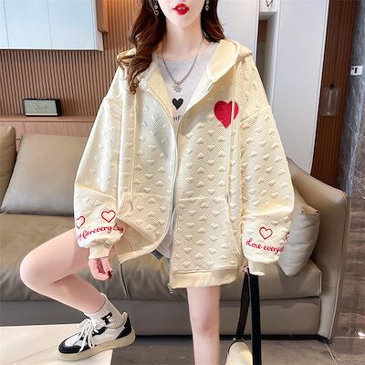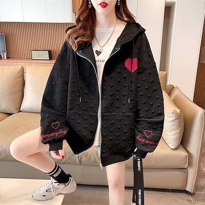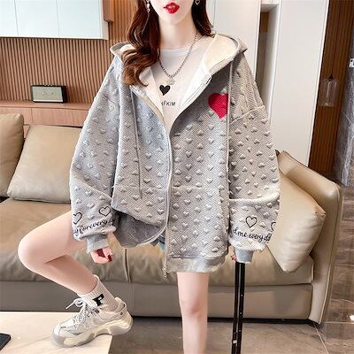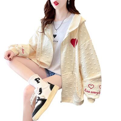 韓国 パーカー ジップ スウェット レディース パーカー カーディガン 秋 新しいスタイル 2024 カーディガン フード付きスウェットシャツ