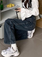人气 新作 デニムパンツ ブルー ワイドパンツ ジーンズ レディース 2024 秋 新しいスタイル ルーズ ストレートパンツ