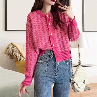ニットカーディガン 2024 初秋 新作 ニットセーター ジャンパー レディース チェック柄 カーディガン ジャケット
