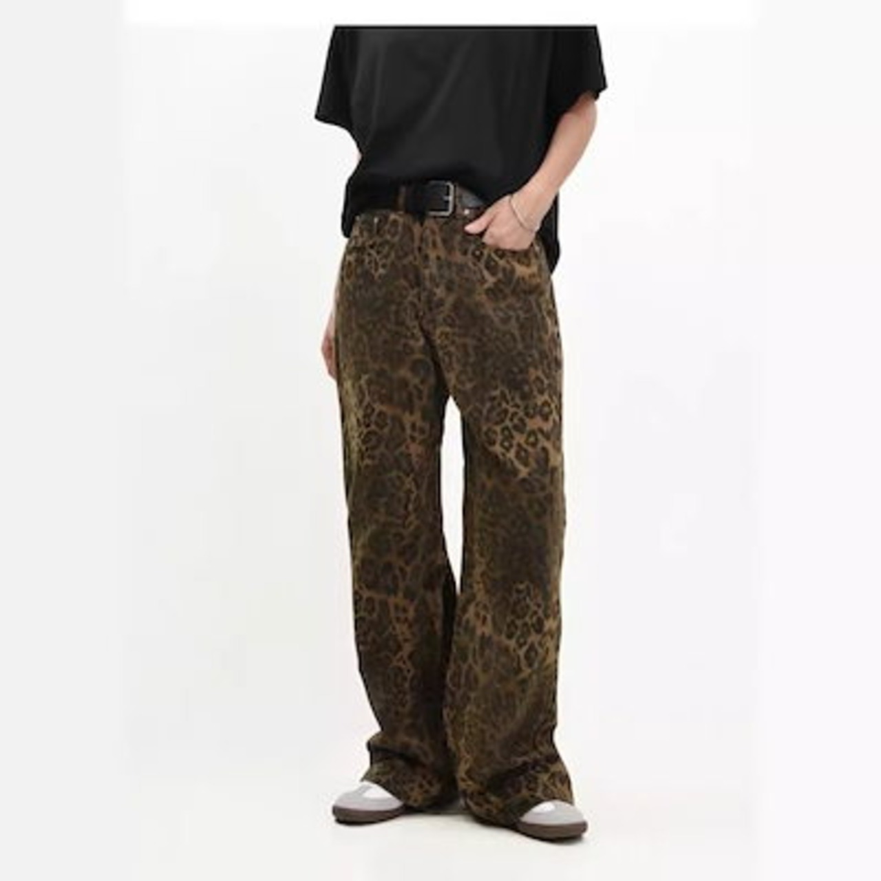 ワイドパンツ 2024 新しいスタイル レトロ ヒョウ柄 ジーンズ ストレート ルーズ 男女 秋 カジュアルパンツ