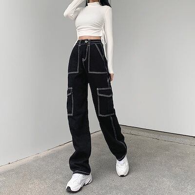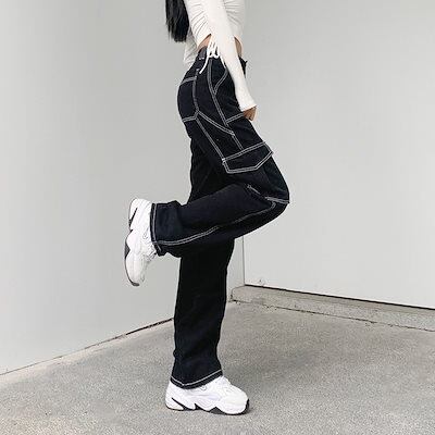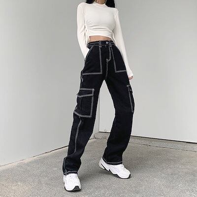 ワイドパンツ ハンサム ジーンズ レディース ルーズ カジュアル ワイドレッグ ワークパンツ