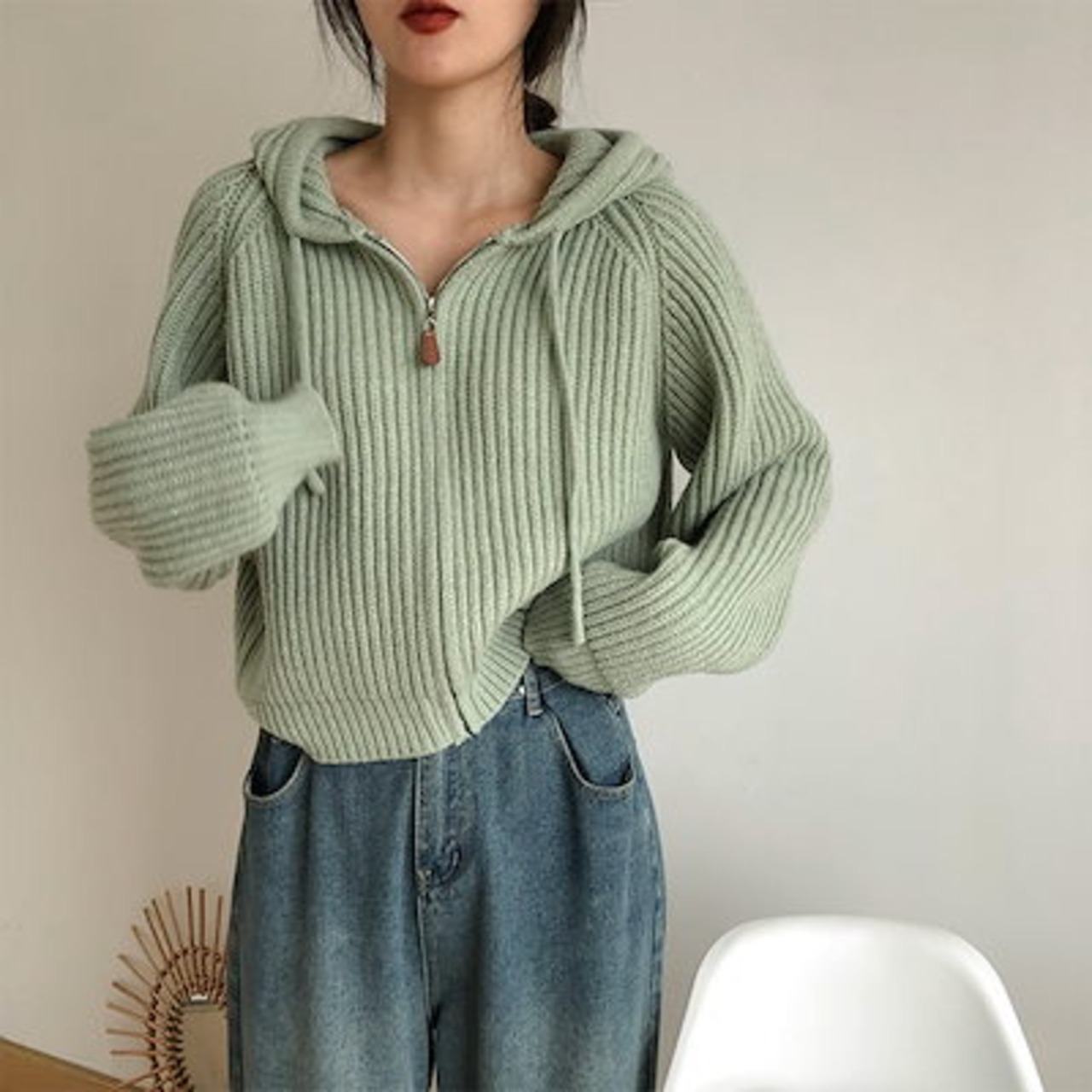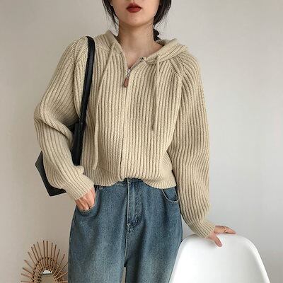 ニットカーディガン フード付き ショート ゆったり ニット カーディガン 春と秋 コート ジャンパー レディース