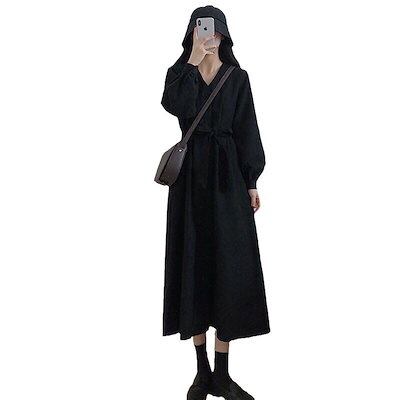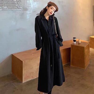 ワンピース 秋 ミドル丈 ドレス レトロ ゆったり ロングスリーブ シャツ ロングスカート