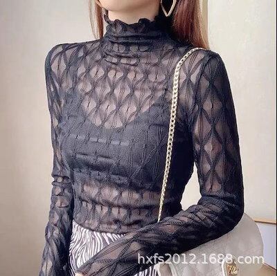 今っぽシアーシャツ ロングスリーブ 木耳エッジ ロングスリーブ シフォン トップス レディース 初秋