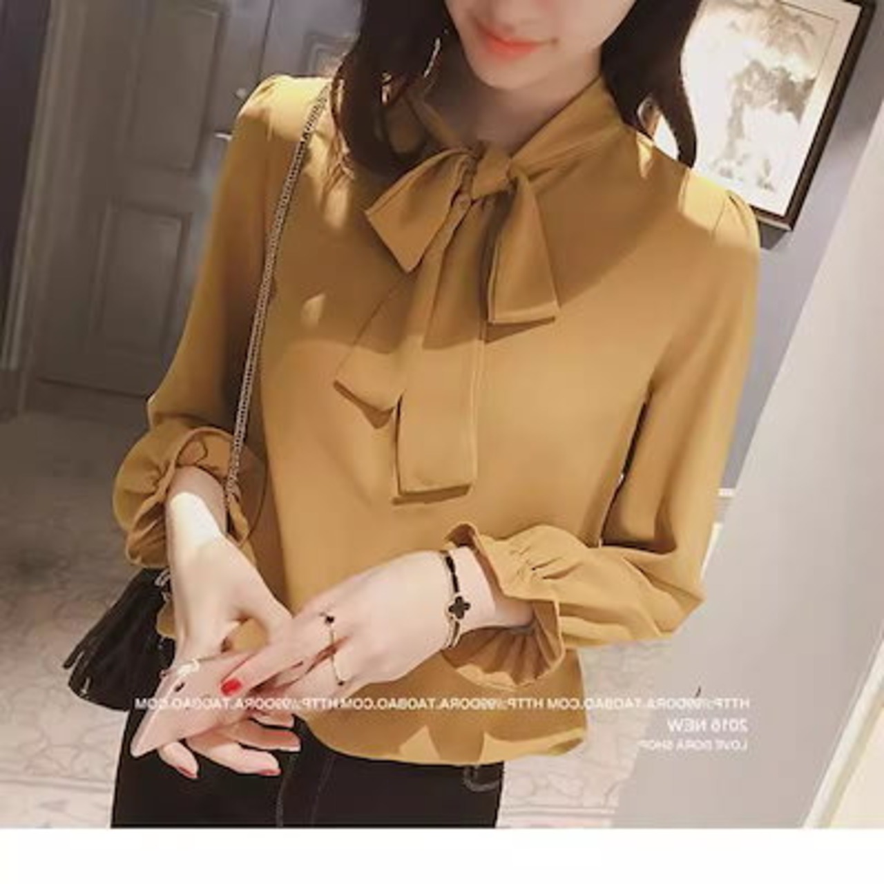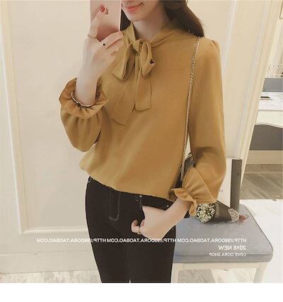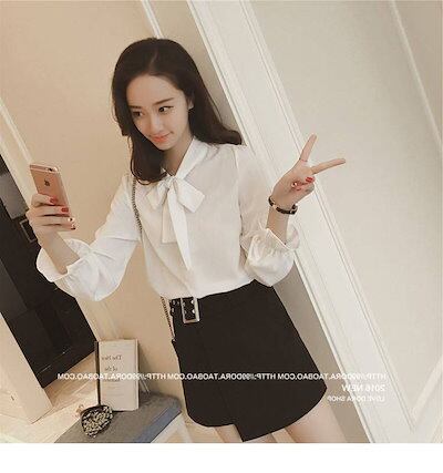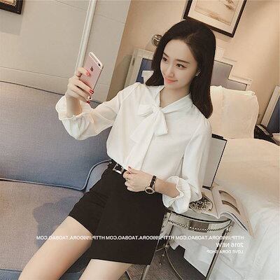 今っぽシアーシャツ シフォンシャツ 女性 2024秋 ブラウス ボウタイ ブラウス