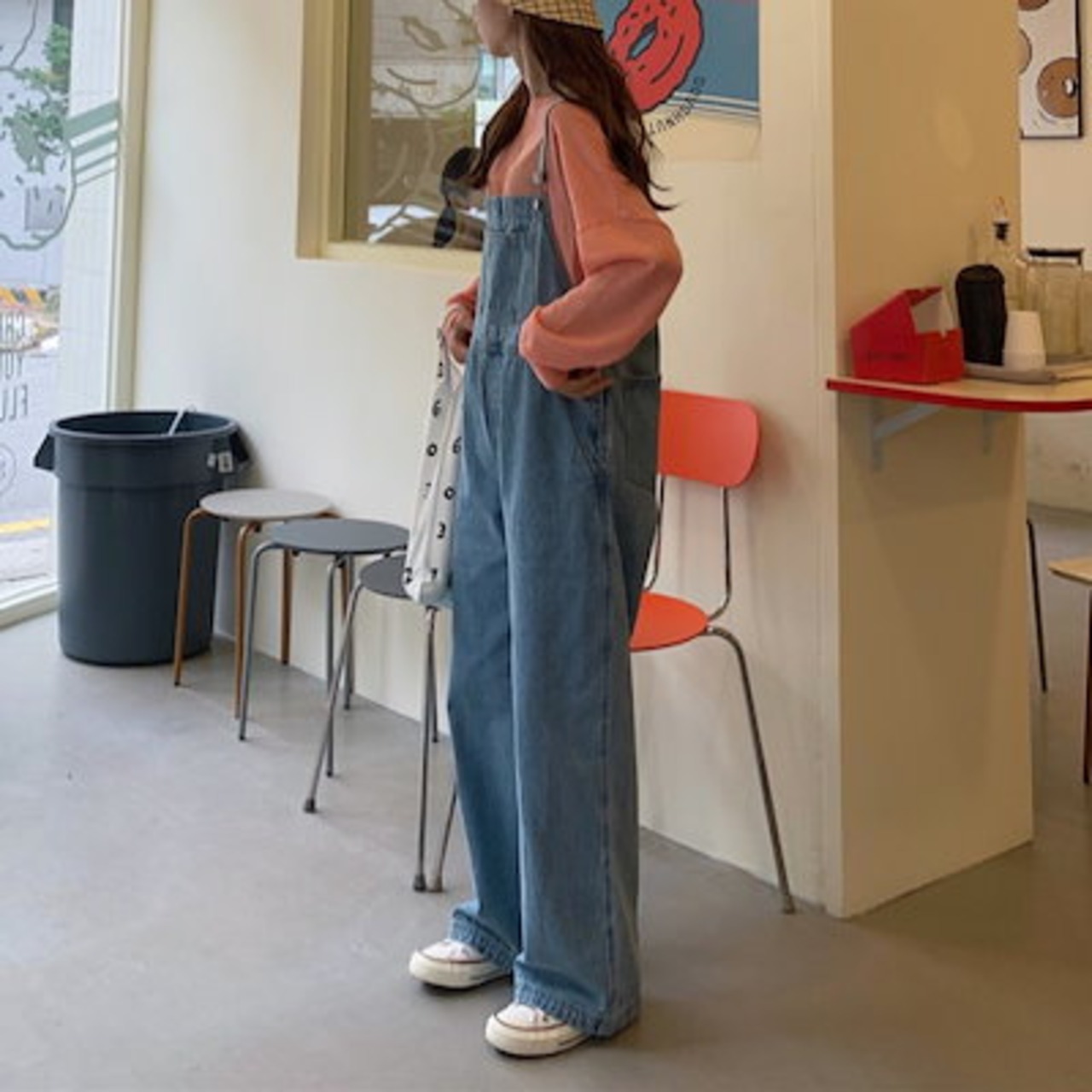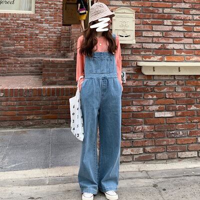 人气 新作サロペット 2024年秋の新作 パンツ ゆったり ジーンズ スリムワイドレッグパンツ