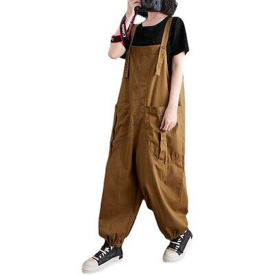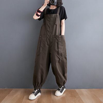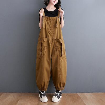 人气 新作サロペット ゆったり カジュアル バックパックパンツ 大きいサイズ 秋 無地 大きなポケット ハーレクインパンツ