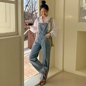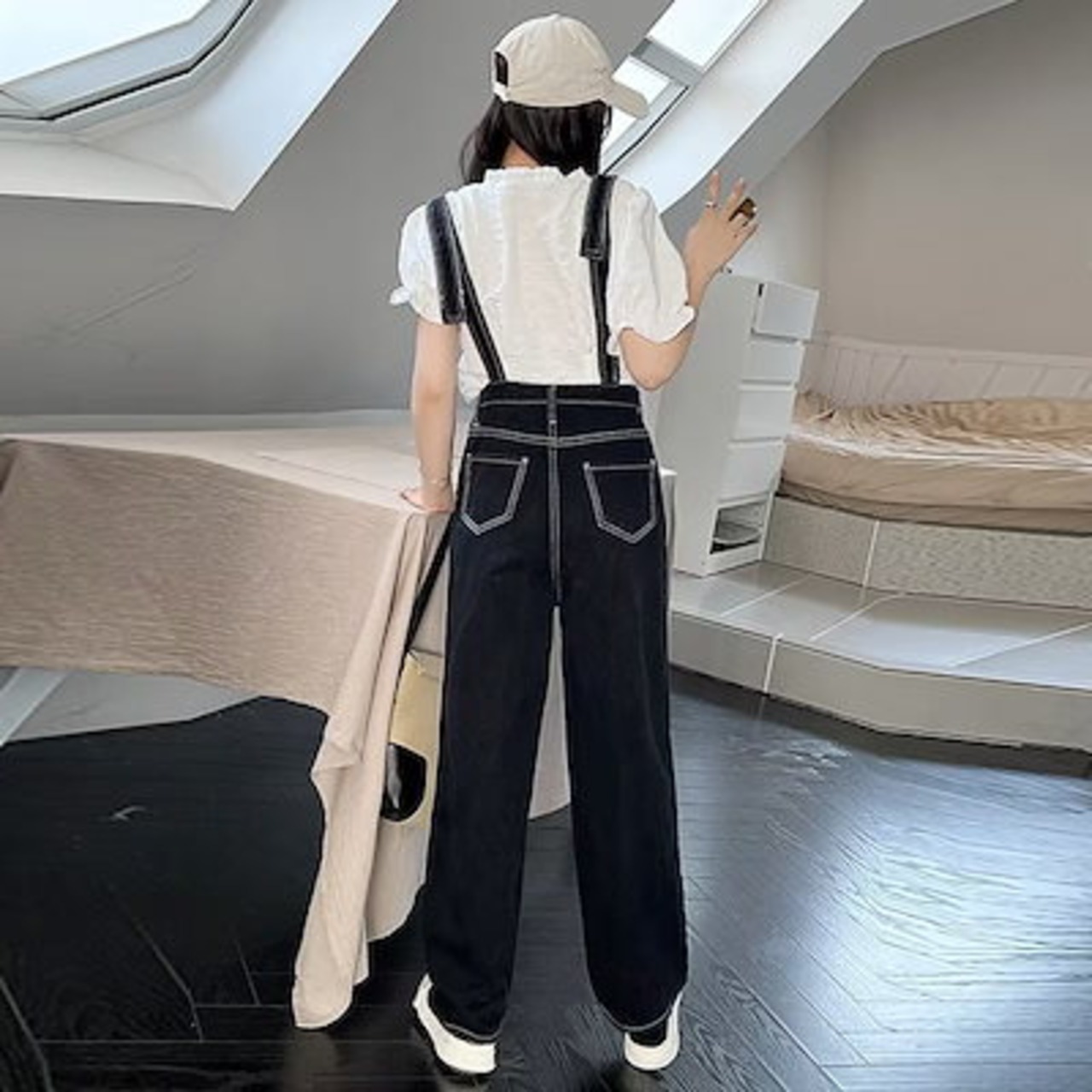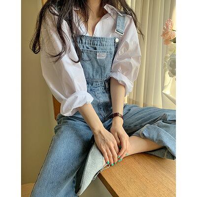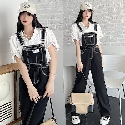 人气 新作サロペット 秋 新しいスタイル シンプル ルーズ ワイドパンツ 薄手 バックストラップ ジーンズ