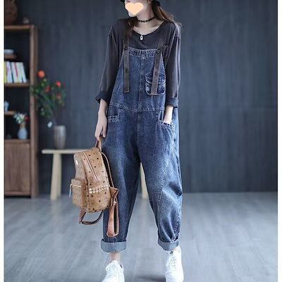 人气 新作サロペット カウボーイ バック付きパンツ 2024 秋の新作 ルーズ 薄手 ハレン ジーンズ