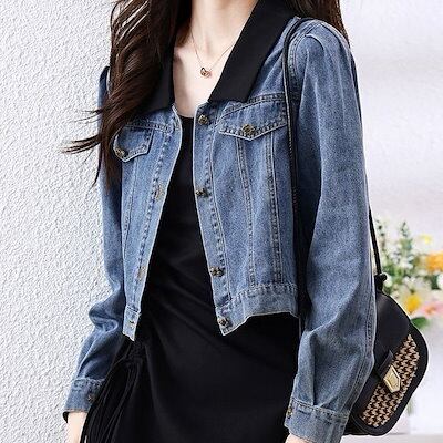 人气 新作デニムジャケット ファッショナブルなデニムジャケット女性 2024 秋 新作 ショート丈トップス ワークウェア ジャケット