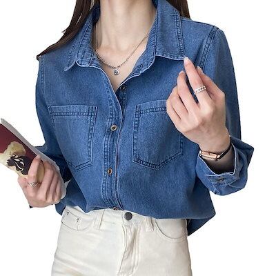 人气 新作デニムジャケット ダークブルー ソフト カウボーイシャツ 女性 新モデル 2024年秋 新作 ブラウス