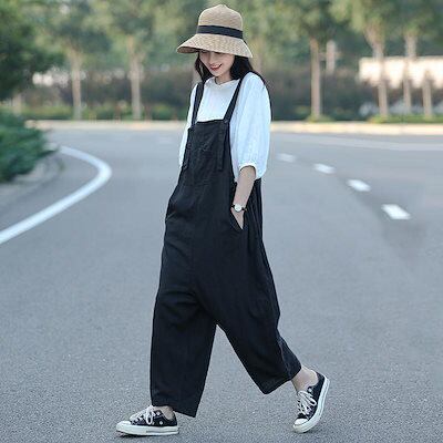 コーデ完成!サロペット 女性の夏のバックレスパンツ綿麻ルーズカジュアルパンツワイドレッグパンツ 韓国ファッション
