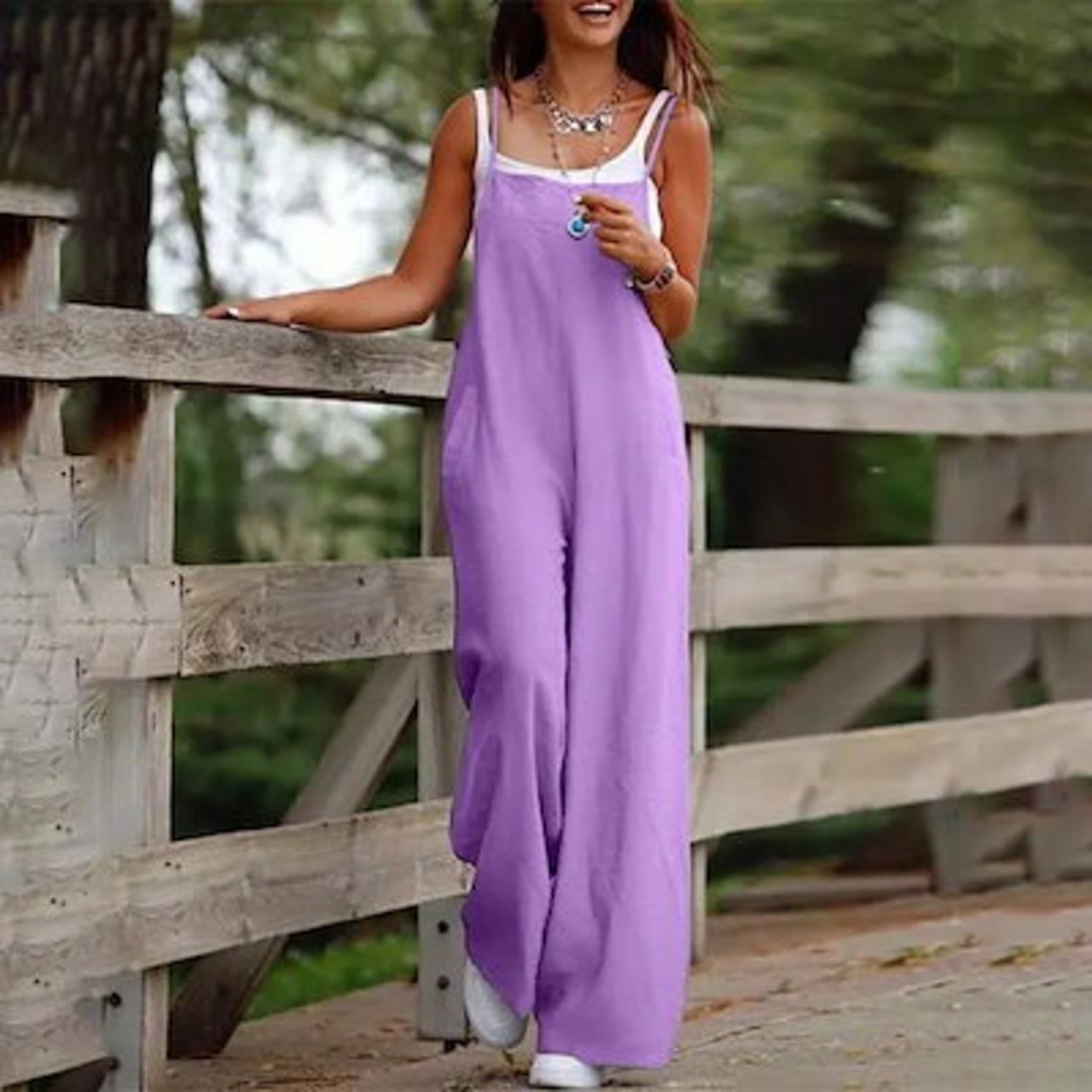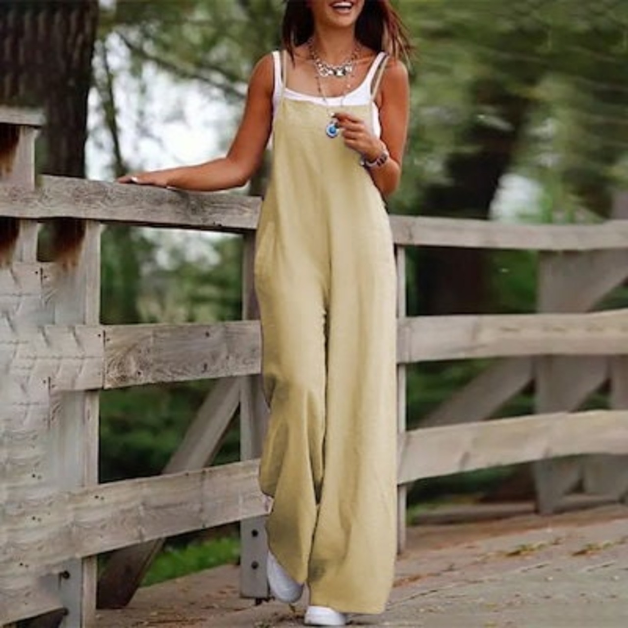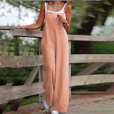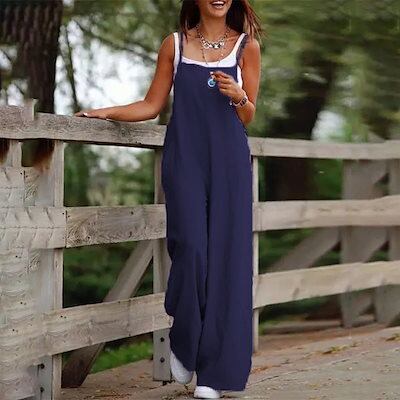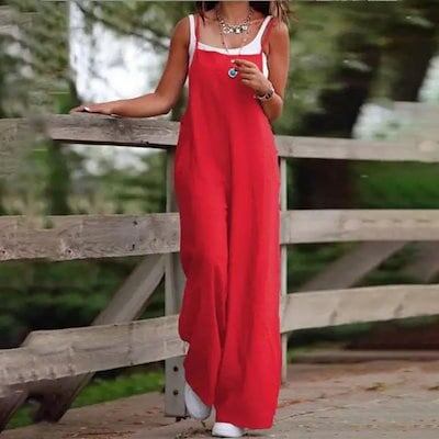 コーデ完成!サロペット 2024新作カジュアルパンツ女性ゆったり綿麻シンプルワイドレッグバックパンツ 韓国ファッション