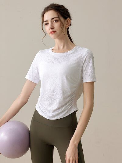 おしゃれヨガウェア お家ヨガウェア 修身 半袖 運動 専門ピラティストレーニングフィットネスウェア 上着 Tシャツ トップス 韓国