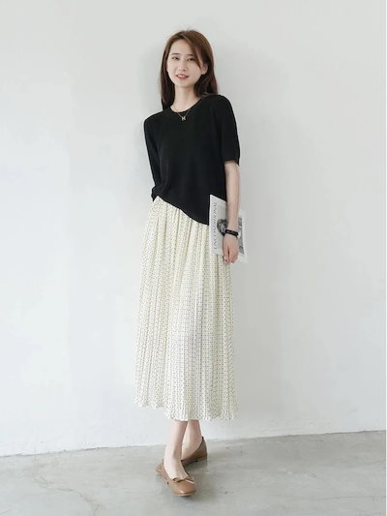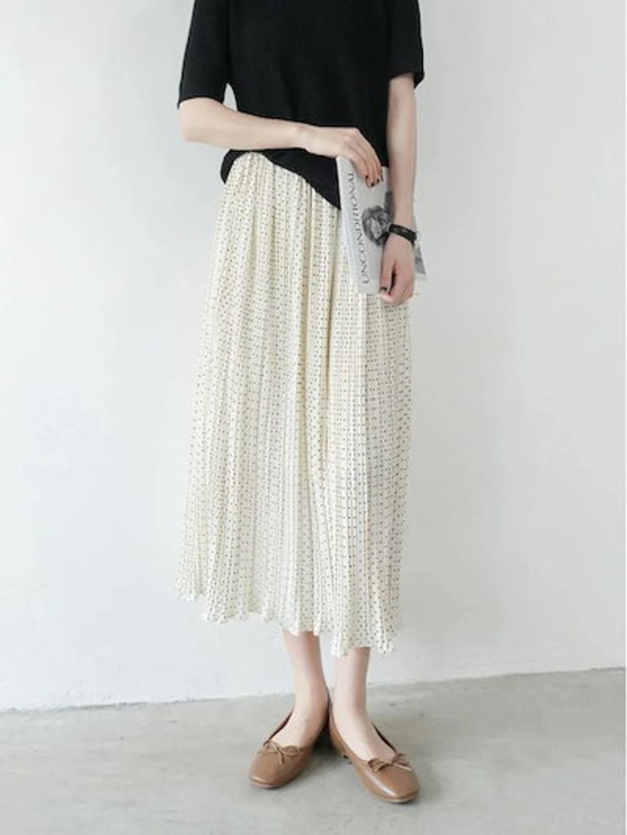 韓国ファッション レディース マキシスカートドットプリント半身スカート夏のハイウエストプリーツスカートハーフスカートミディアム2024新型夏