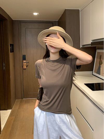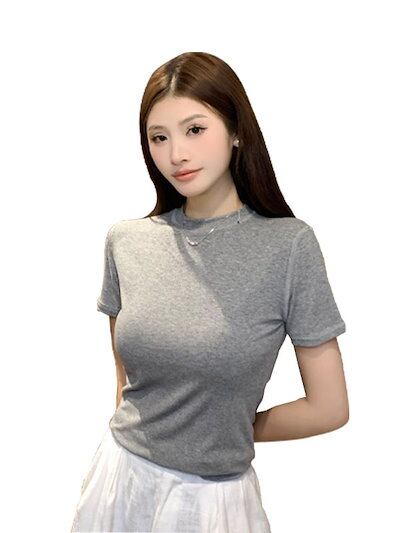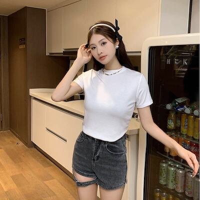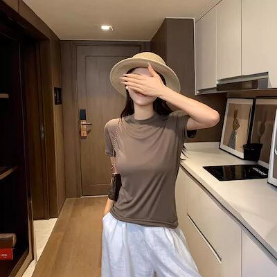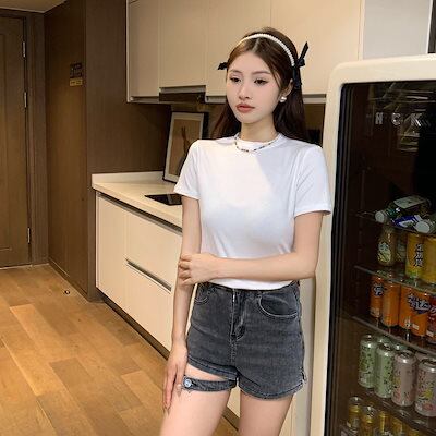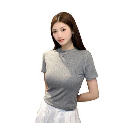 Tシャツ トップス 丸首 半袖 2024夏 シンプルフィットタイツ 半袖 レディース 韓国