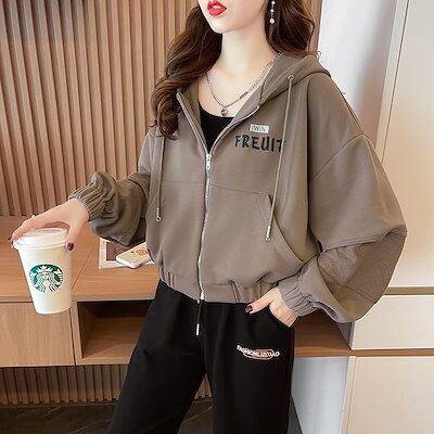 アウター 短い 2024 秋の新作 百掛け ファッション 大きいサイズ スウェット レディース ルーズ 薄手 ジャケット 韓国ファッション