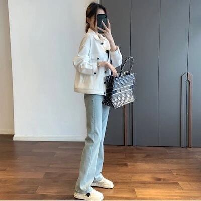 LA PELLEアウター 2024 春秋新作 クラッシュカラー ラペル ワークウェア カジュアル デザイン 通勤 ショート アウター レディース トップス 百掛け 韓国ファッション