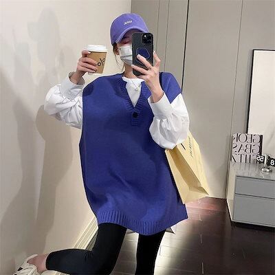 ベスト 2024年秋 百掛け Vネック レディース ノースリーブ ニット 薄手 重ね着 ゆったり ベスト 韓国ファッション
