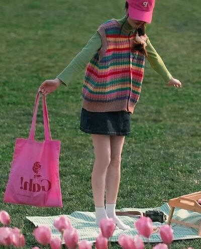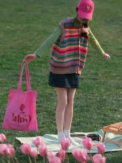 ベスト ドパミン レインボー ストライプ ニットベスト カーディガン ジャンパー レディース 春と秋 重ね着 ウエストコート ノースリーブ トップス 韓国ファッション
