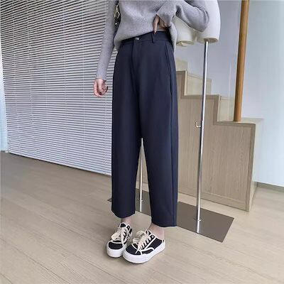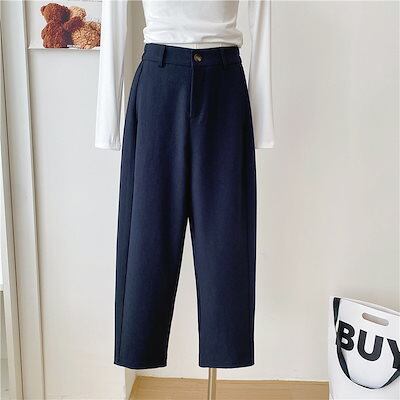 テーパードパンツ 2024 秋 カーキ スーツパンツ レディース ワイドルーズ ワイドパンツ ストレートパンツ 韓国