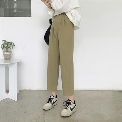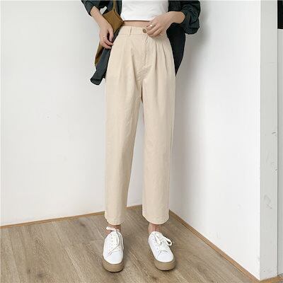 テーパードパンツ ツイル カジュアルパンツ ゆったり ハレンチパンツ レディース 春秋 ハイウエスト 薄手 九分丈 大きいサイズ ワークパンツ 韓国