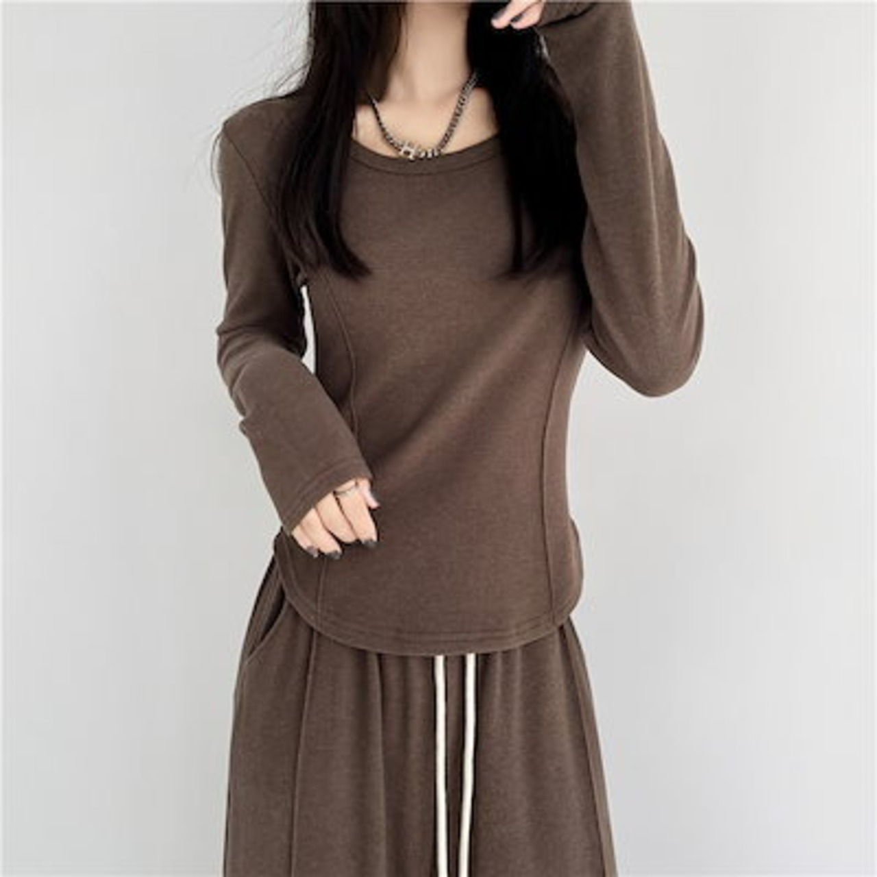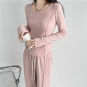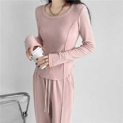 セットアップ 2024 のんびり 甘い 秋 長袖 ラウンドネック スーツ ゴム入り ワイドパンツ 韓国ファッション