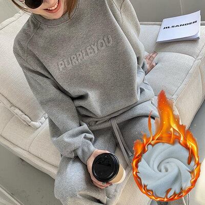 セットアップ バンプ文字 大きいサイズ セット レディース 2024 春秋 韓国 ニュースタイル ゆったり 長袖 スウェットシャツ ズボン 2セット 韓国ファッション