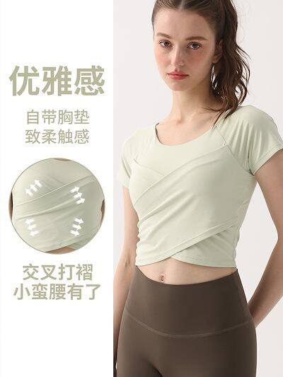 おしゃれヨガウェア お家ヨガウェア 胸当て付き 夏 フィットネスウェア 上着 専門 ランニング うんどう 半袖 Tシャツ 高級感 2024 韓国