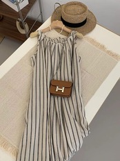 ヘビロテ!キャミワンピース ラージコード しま模様 高級感 袖なし キャミソール 夏 やせて見える ロングスカート ドレス レディース 韓国