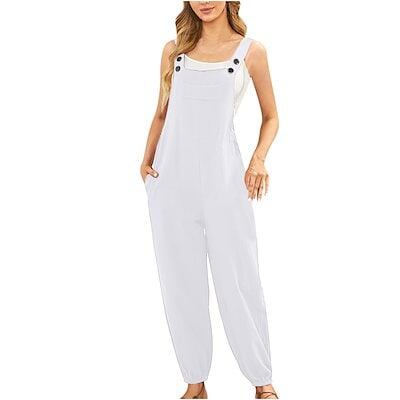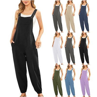 コーデ完成!サロペット レディース コットン リネン ストラップパンツ カジュアル 韓国ファッション