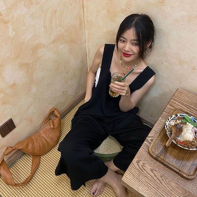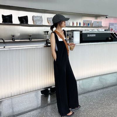 コーデ完成!サロペット アイスシルクの新しい夏のストラップジャンプスーツゆるくて薄い 韓国ファッション