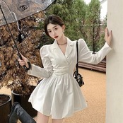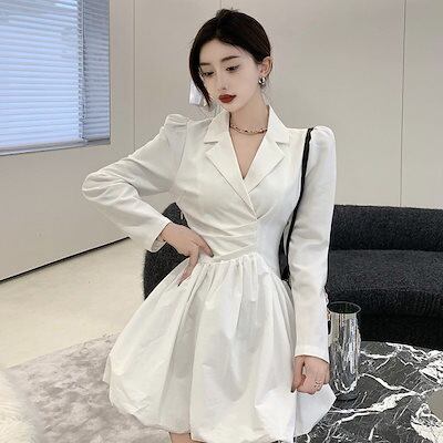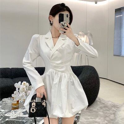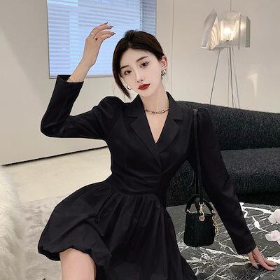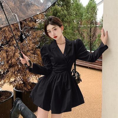 韓国ファッション 早秋 フレンチ長袖 スーツワンピース レディース デザイン感