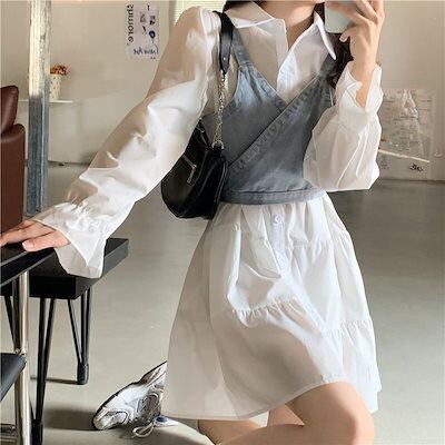 韓国ファッション 早秋 2024年新作フレンチ長袖 2点セットワンピース レディース デザイン感