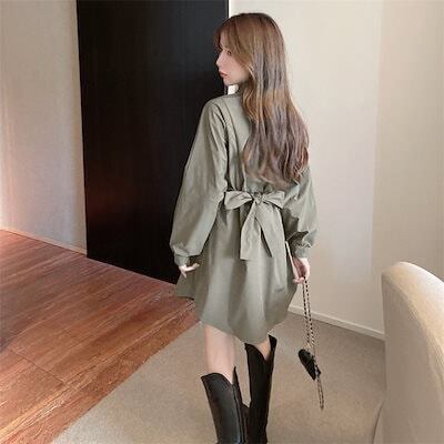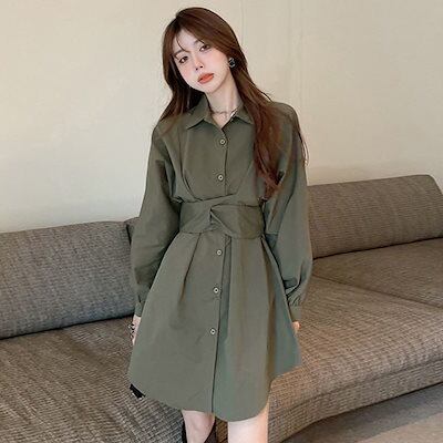 2024年新作フレンチ長袖 シャツ ワンピース レディース デザイン感 早秋 韓国ファッション カジュアル